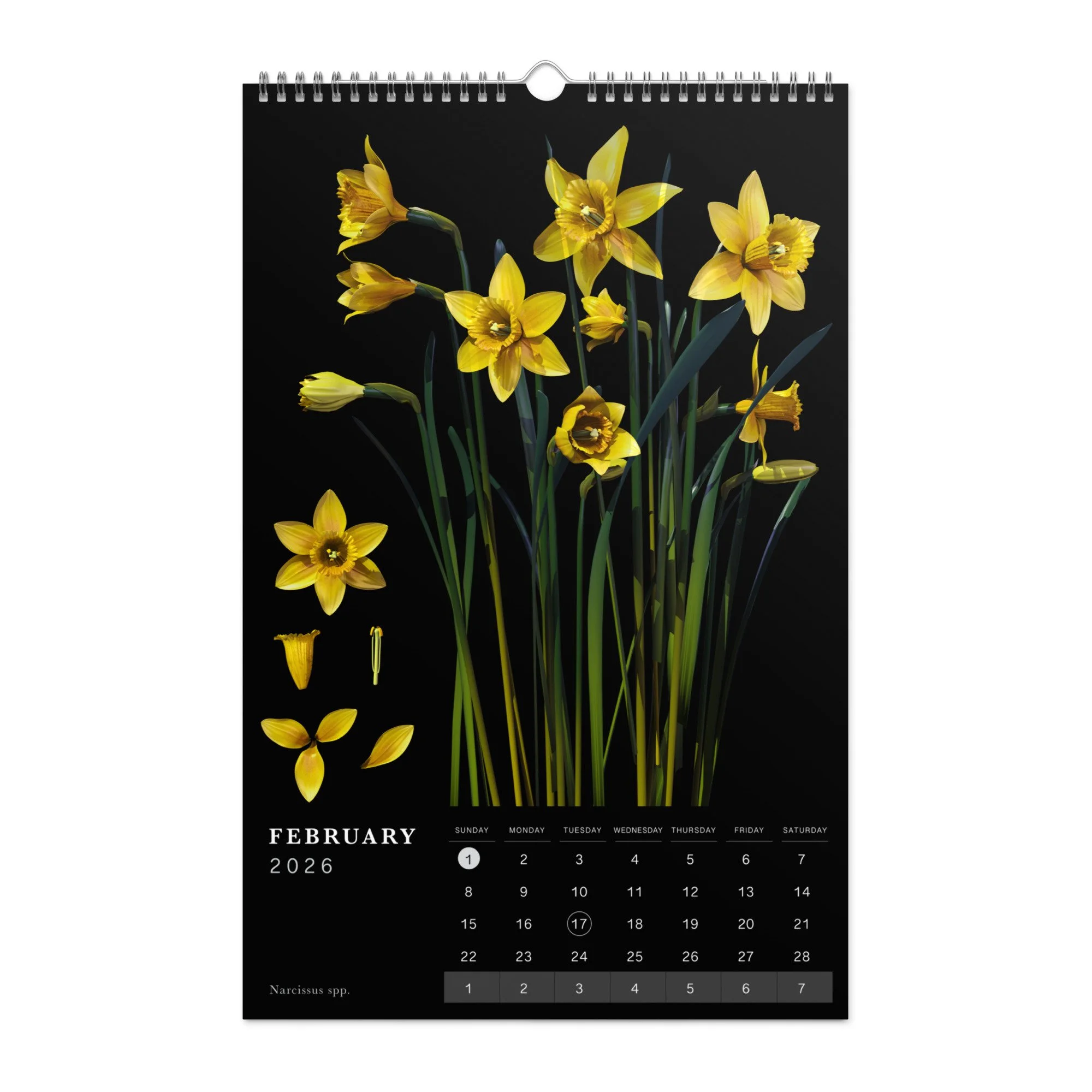 Inspired by the seasons this monthly calendar features full color floral illustrations, monthly formatted dates, & corresponding moon phases.